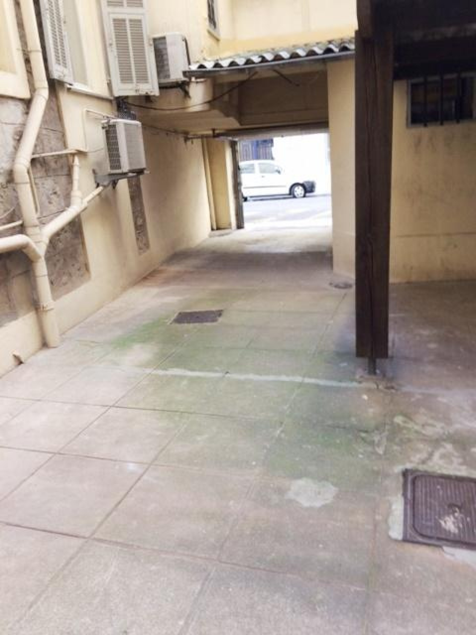 Accès dans une cour intérieure fermée.
